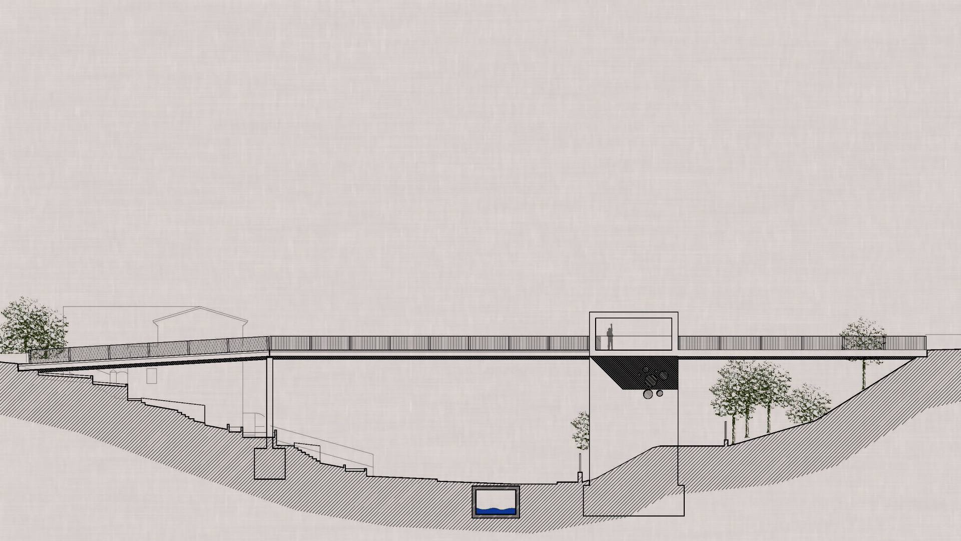 La pasarela se identifica asà como un elemento nuevo que marca el recorrido, percibiéndose desde visiones lejanas como un punto de paso o puerta.